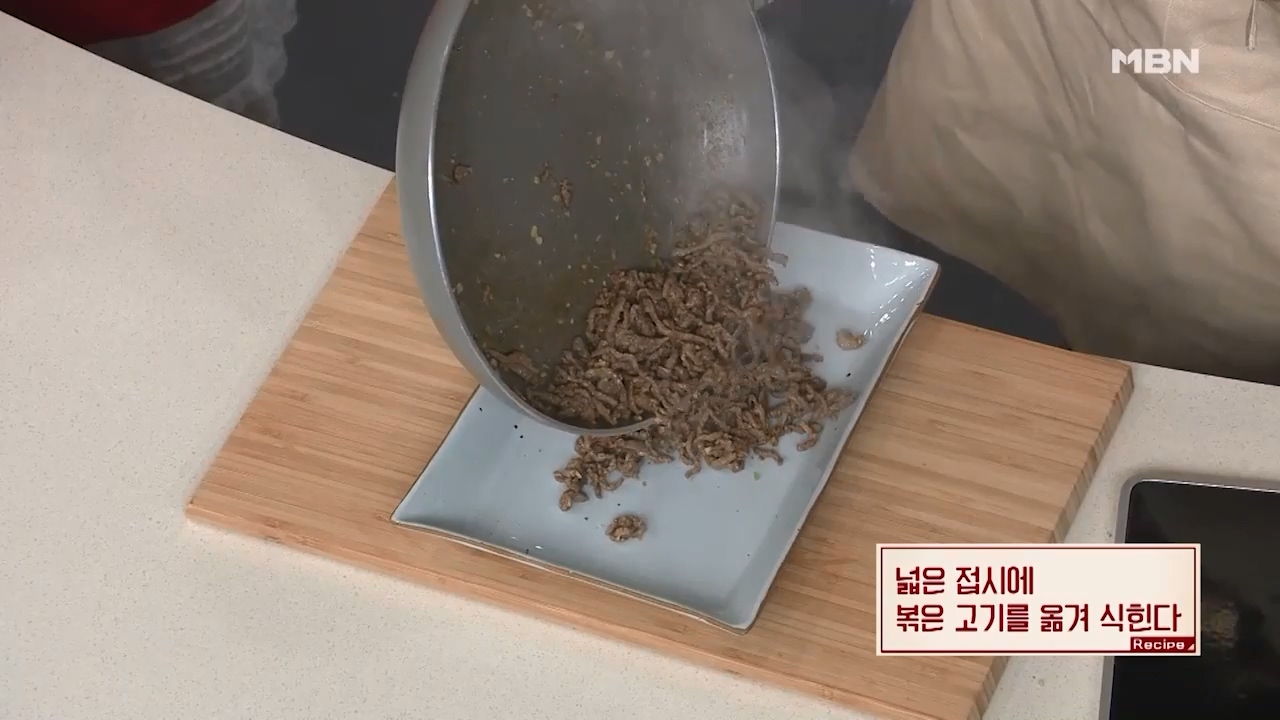14. 넓은 접시에 볶은 고기를 옮겨 식혀줍니다.