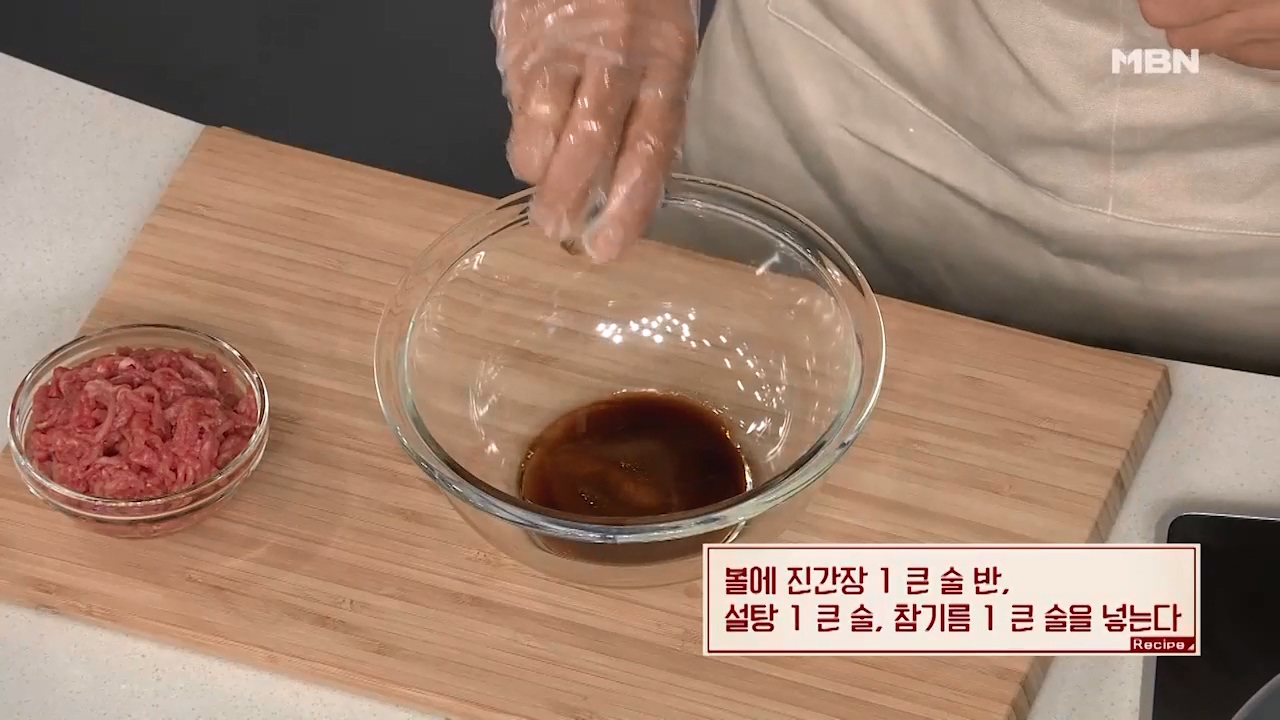 10. 볼에 진간장 1큰술반, 설탕 1큰술, 참기름 1큰술을 넣습니다.