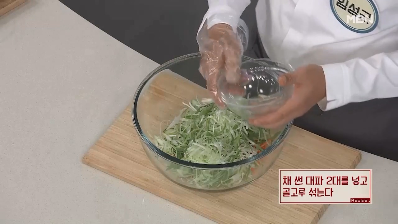 14. 채 썬 대파 2대를 넣고 골고루 잘 섞어줍니다.