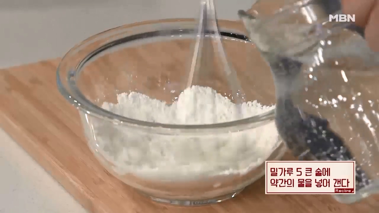 12. 밀가루 5큰술에 약간의 물을 넣어 개어줍니다.