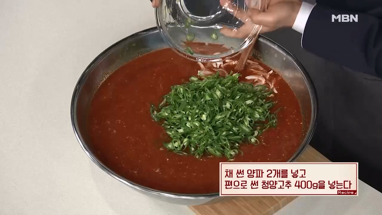 16. 채 썬 양파 2개를 넣고 편으로 썬 청양고추 400g을 넣어줍니다.