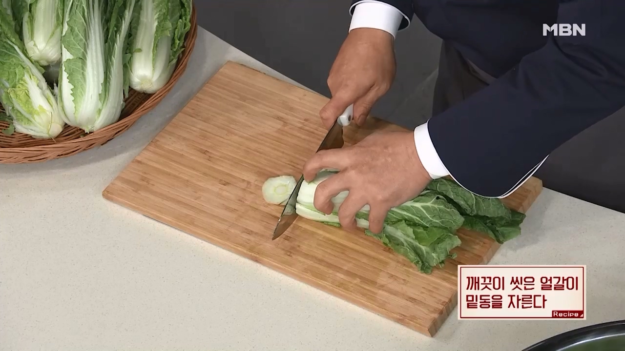 3. 깨끗이 씻은 얼갈이 밑동을 잘라줍니다.