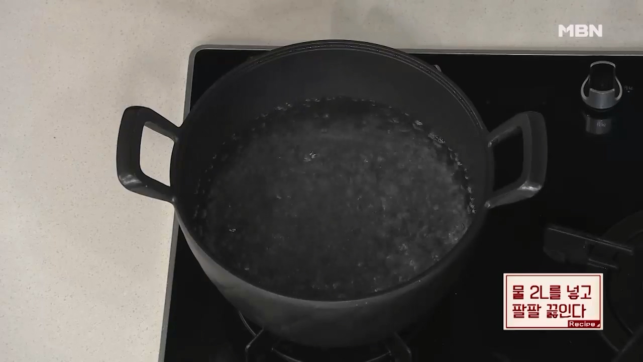 10. 냄비에 물 2리터를 넣고 팔팔 끓입니다.