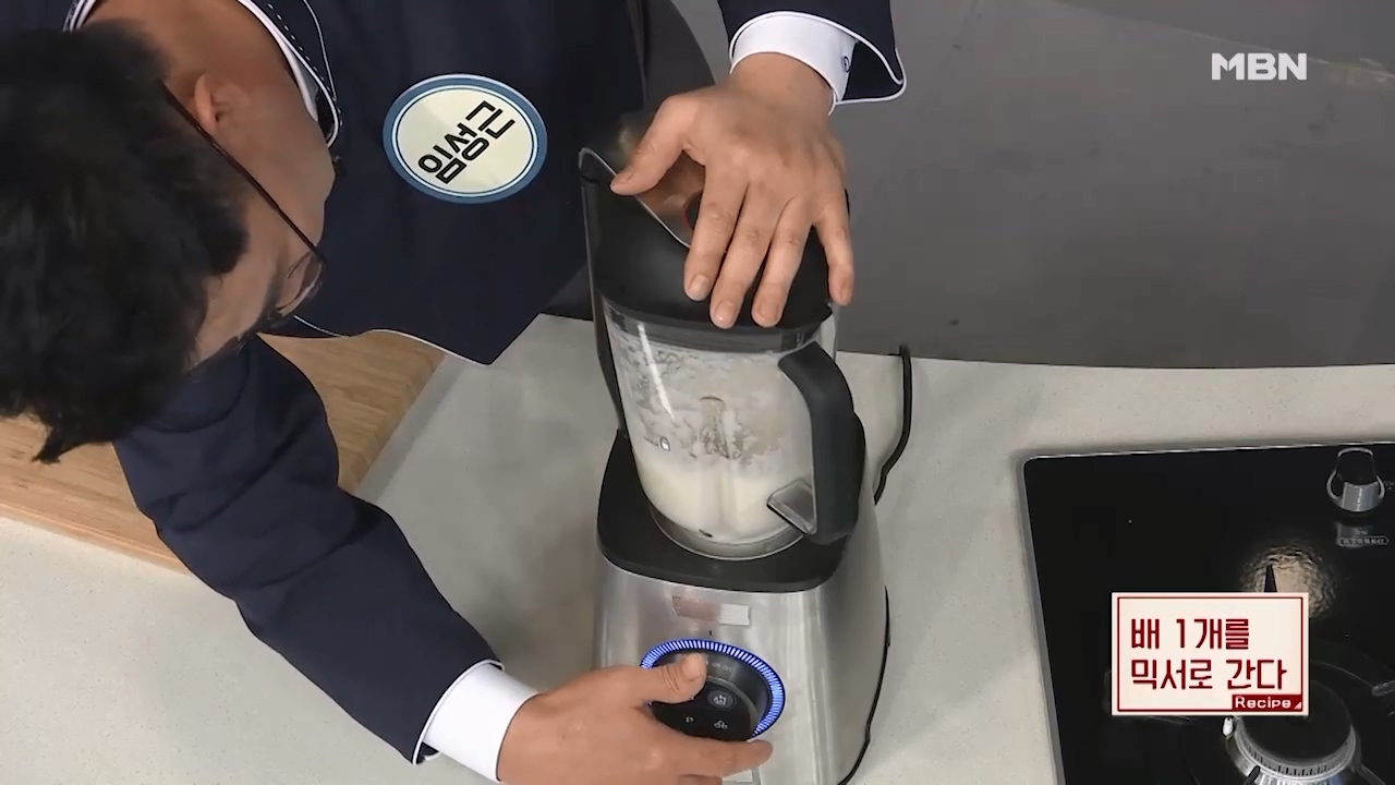 9. 멸치액젓 1컵, 설탕 2컵을 넣고 믹서기에 간 고추와 배를 넣어 잘 섞어줍니다.
