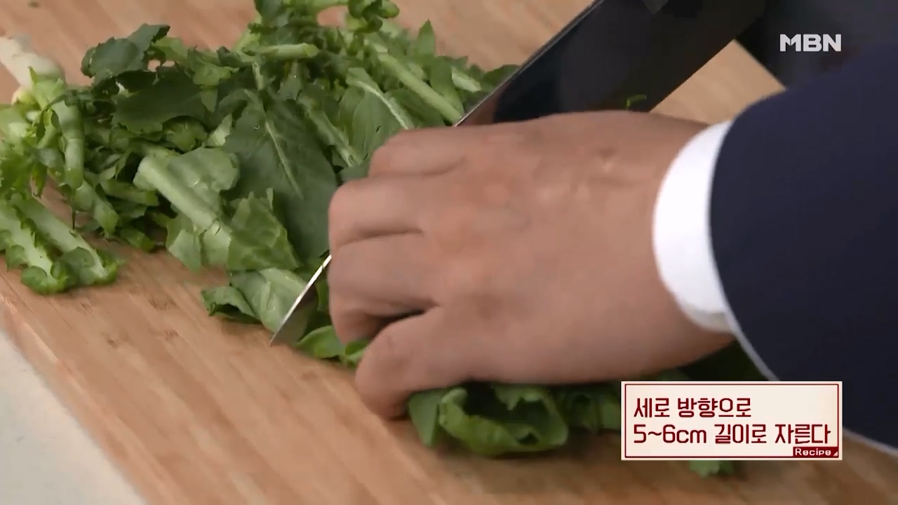 4. 얼갈이 겉잎을 먹기 좋은 크기로 잘라줍니다.