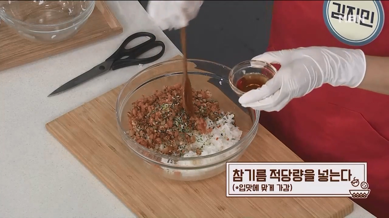 9. 참기름 적당량을 넣습니다. (입맛에 맞게 가감)