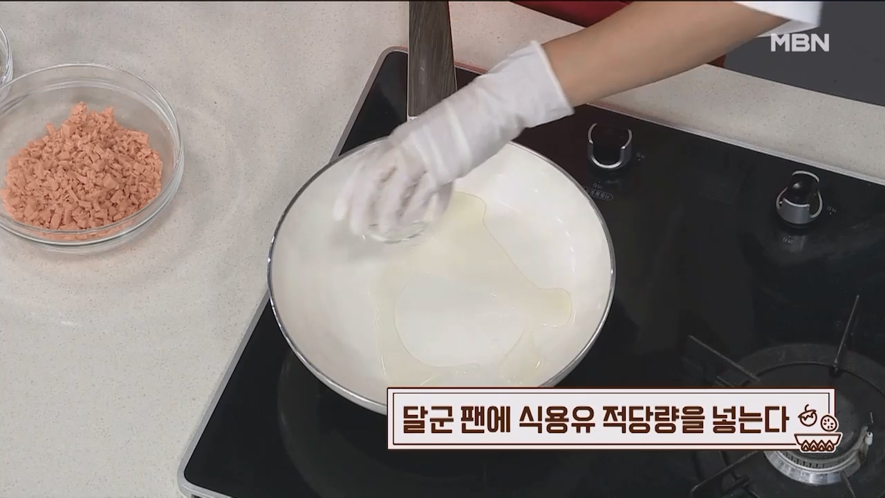 4. 달군 팬에 식용유 적당량을 넣어줍니다.