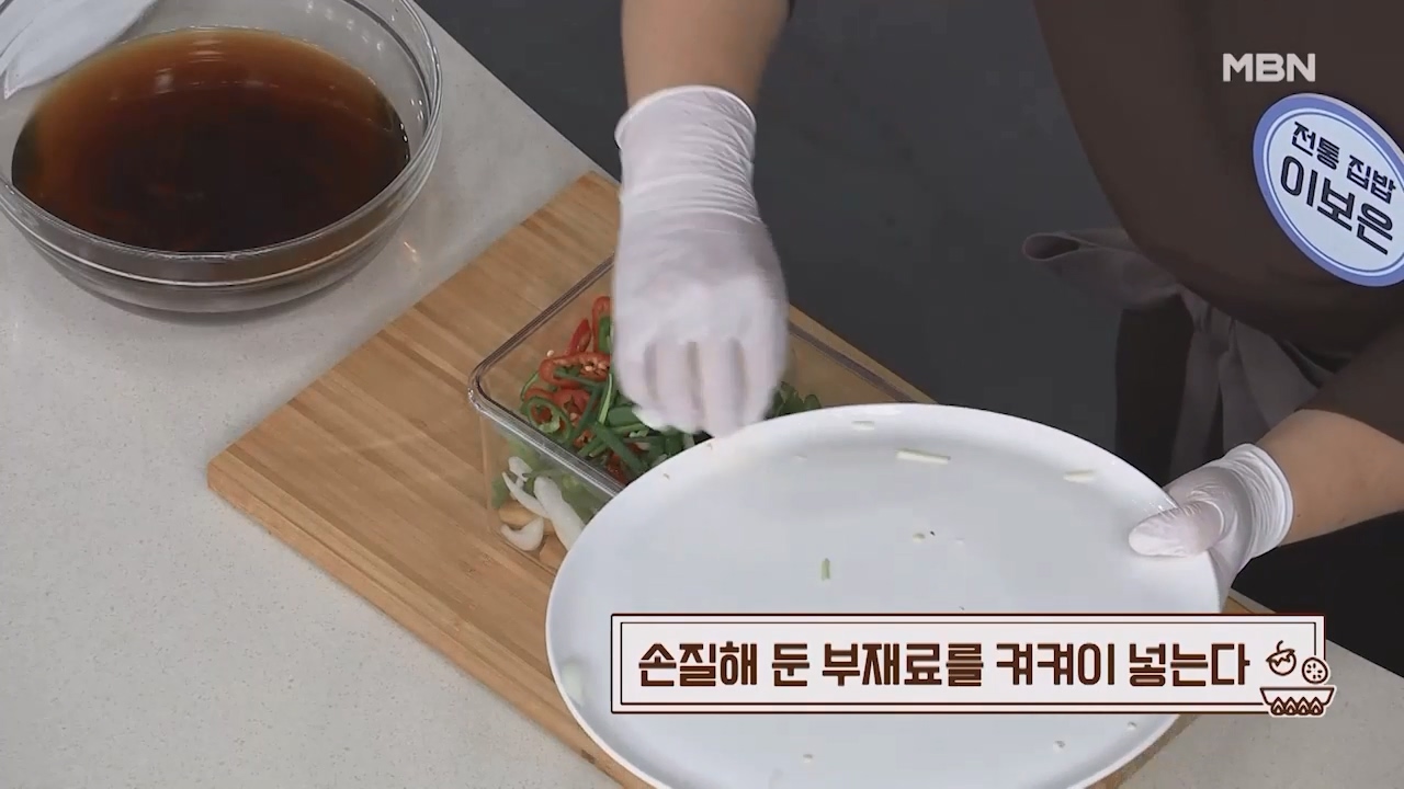 24. 손질해 둔 부재료를 켜켜이 밀폐 용기에 넣습니다.