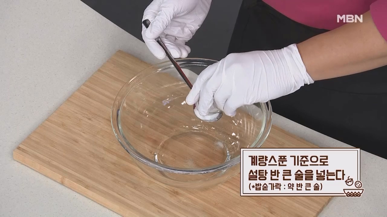 3. 계량스푼 기준으로 설탕 반큰술을 넣습니다. (밥숟가락 약 반큰술)