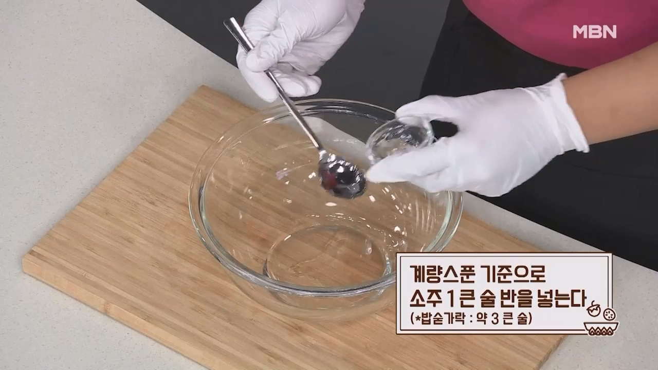 2. 볼에 계량스푼 기준으로 소주 1큰술반을 넣습니다. (밥숟가락 약 3큰술)