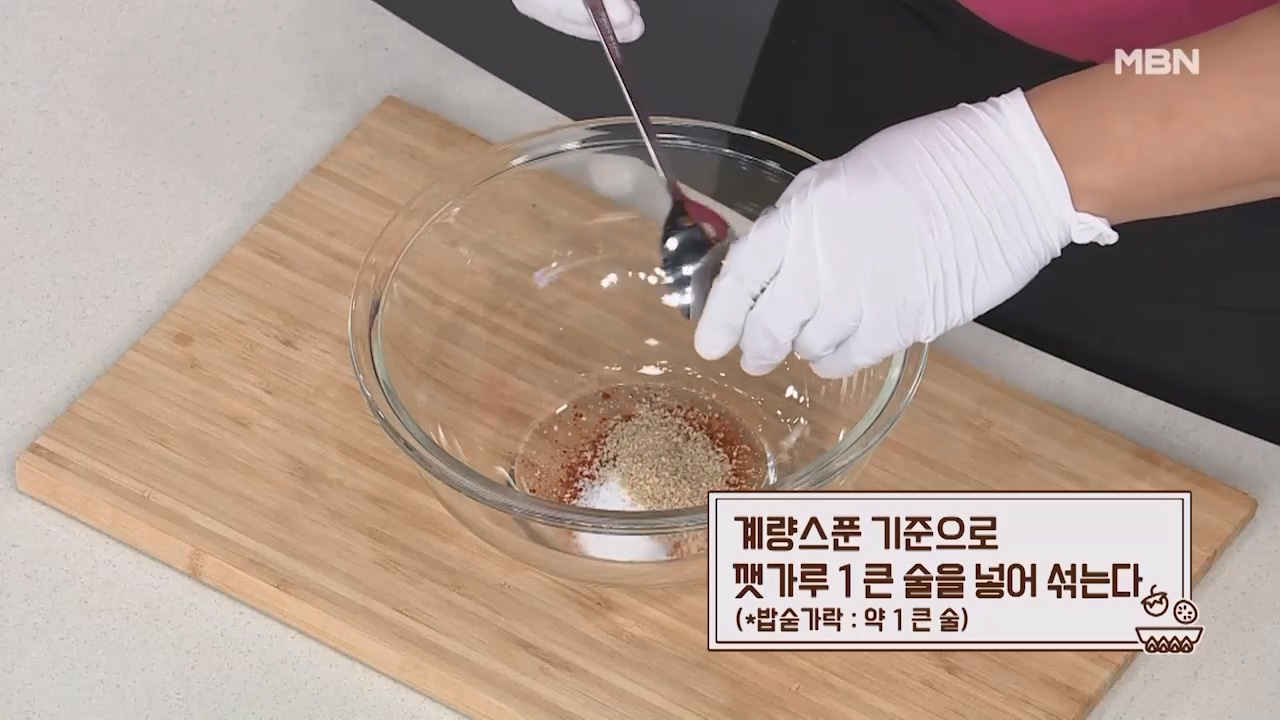 15. 계량스푼 기준으로 참기름 2/3큰술을 넣습니다. (밥숟가락 약 1 1/3큰술)