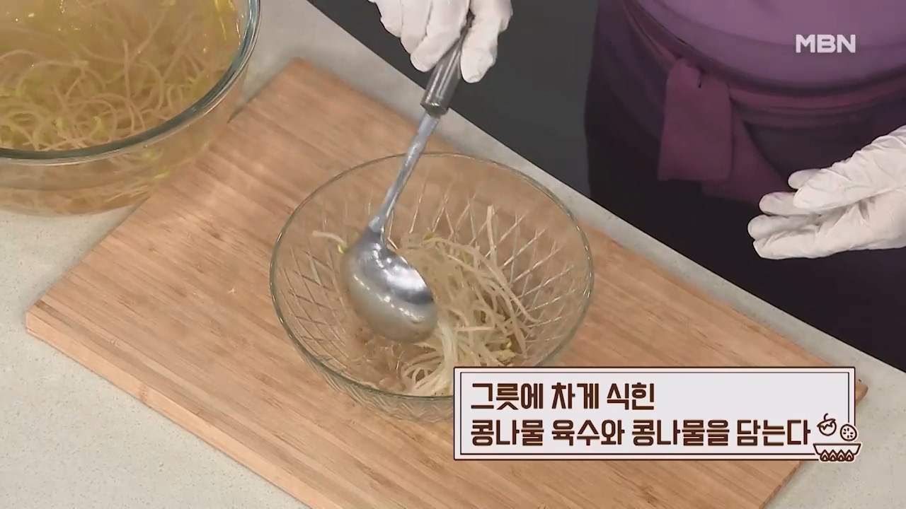 12. 그릇에 차게 식힌 콩나물 육수와 콩나물을 담아줍니다.