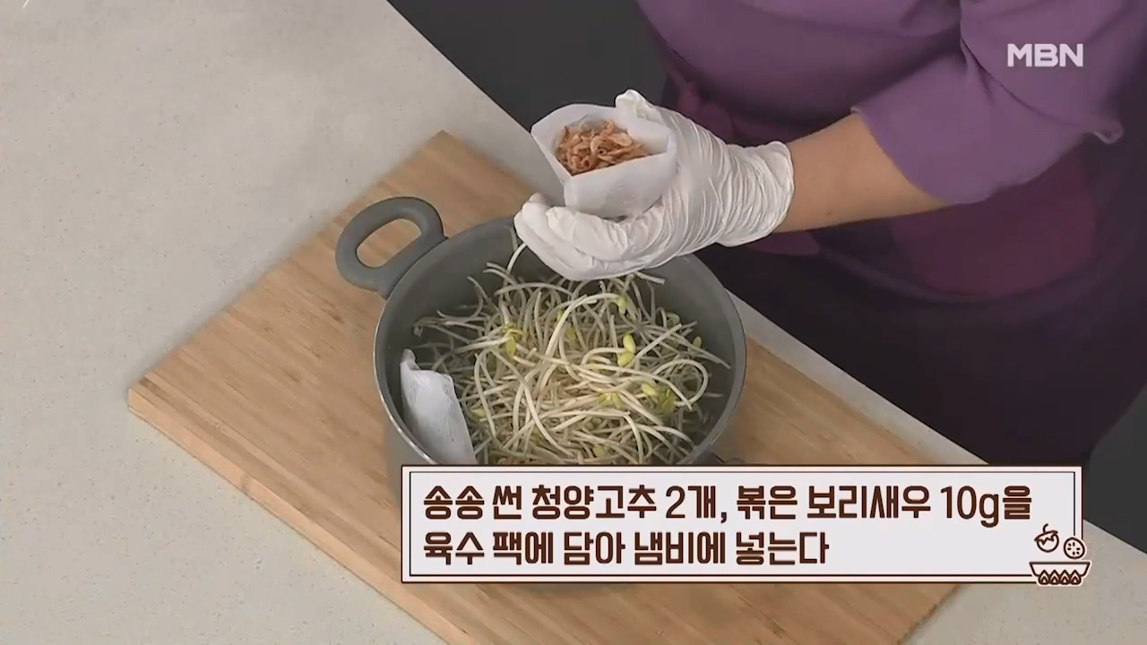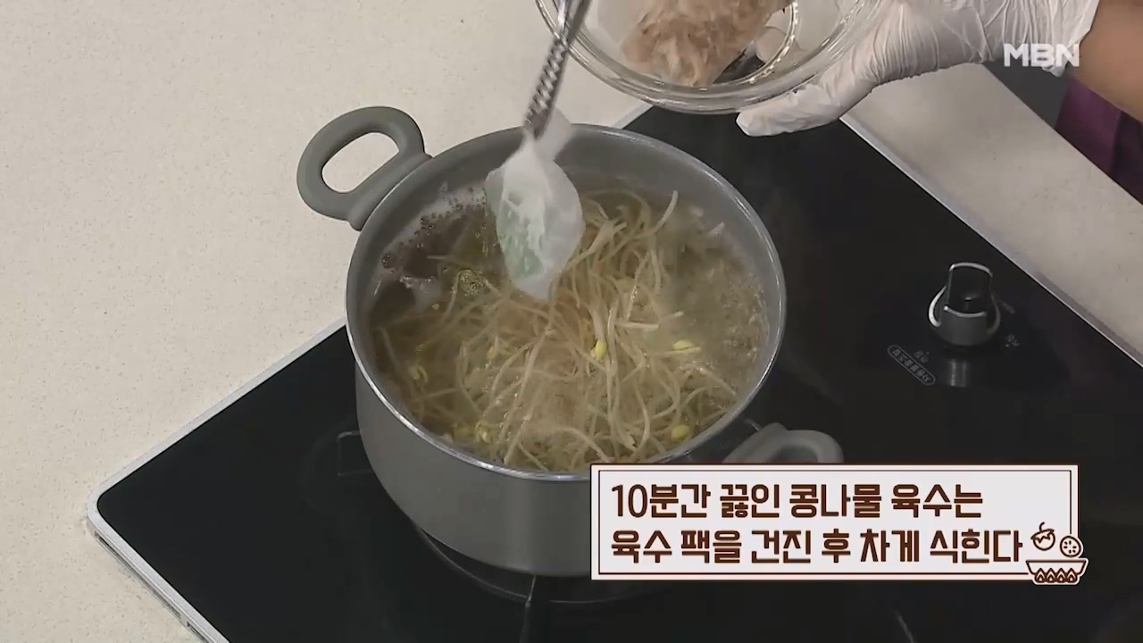 11. 10분간 끓인 콩나물 육수는 육수팩을 건진 후 차게 식혀줍니다.