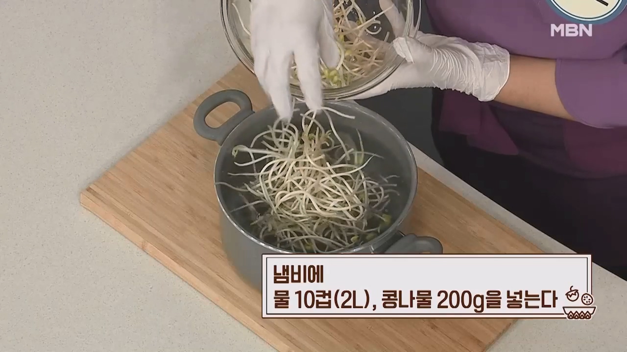 7. 냄비에 물 10컵(2리터), 콩나물 200g을 넣습니다.