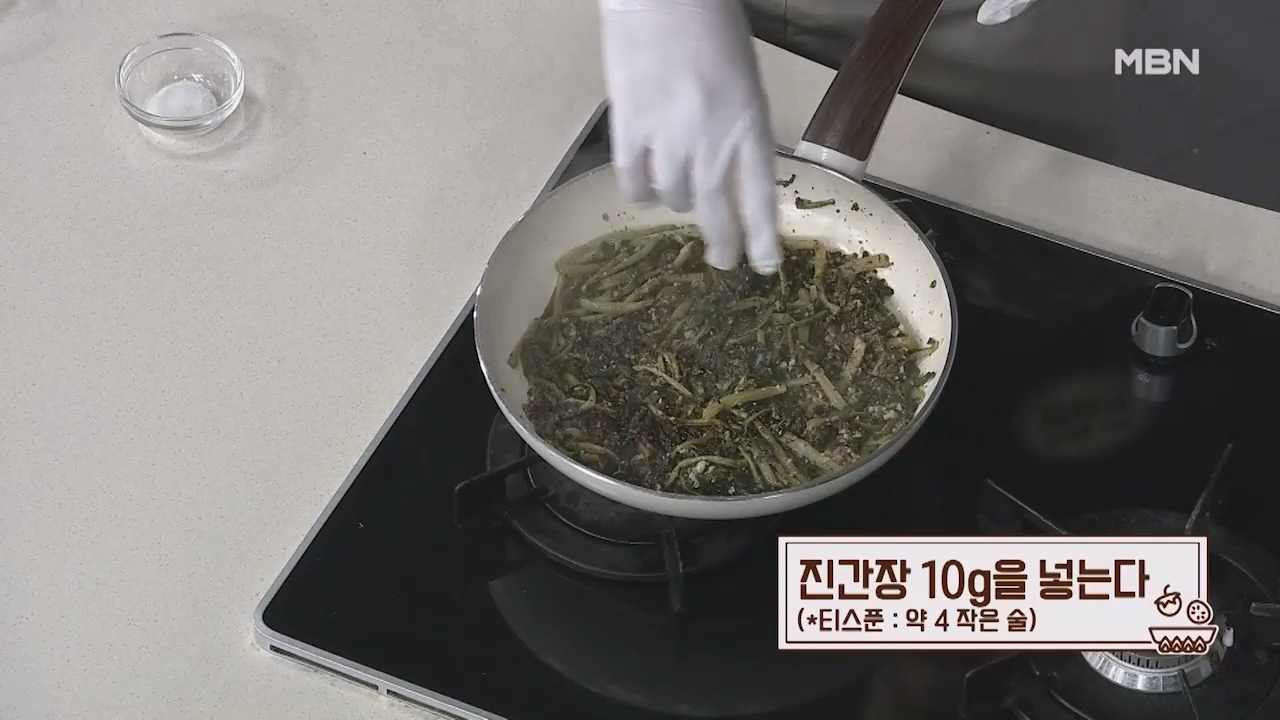 16. 진간장 10g을 넣습니다. (티스푼 약 4작은술)