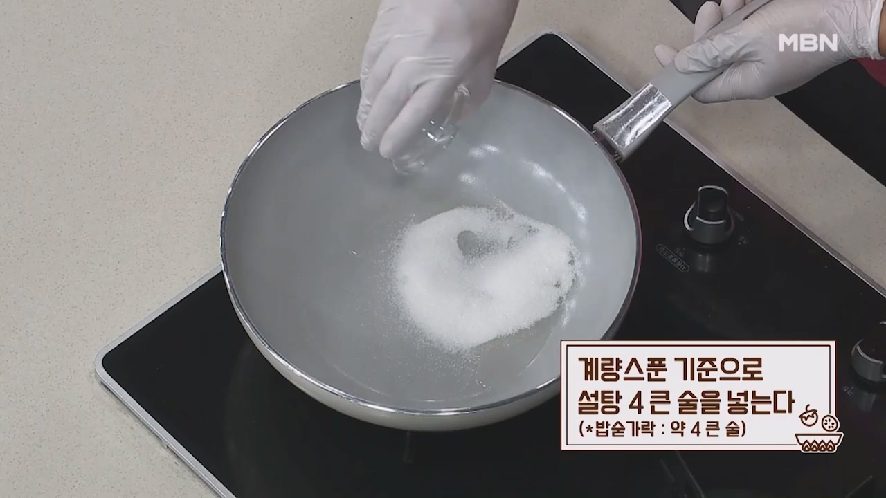 6. 계량스푼 기준으로 설탕 4큰술을 넣습니다. (밥숟가락 약 4큰술)