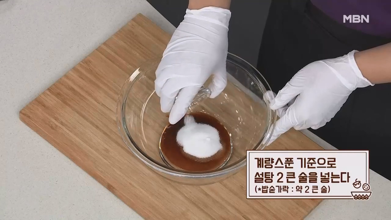 6. 계량스푼 기준으로 설탕 2큰술을 넣습니다. (밥숟가락 약 2큰술)