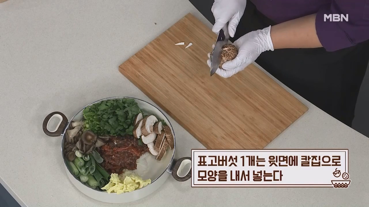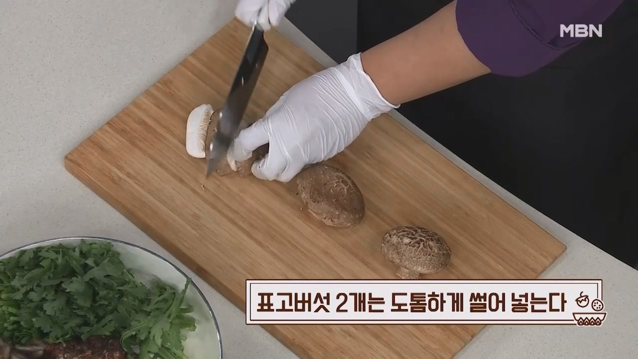 18. 표고버섯 1개는 윗면에 칼집으로 모양을 내서 넣습니다.