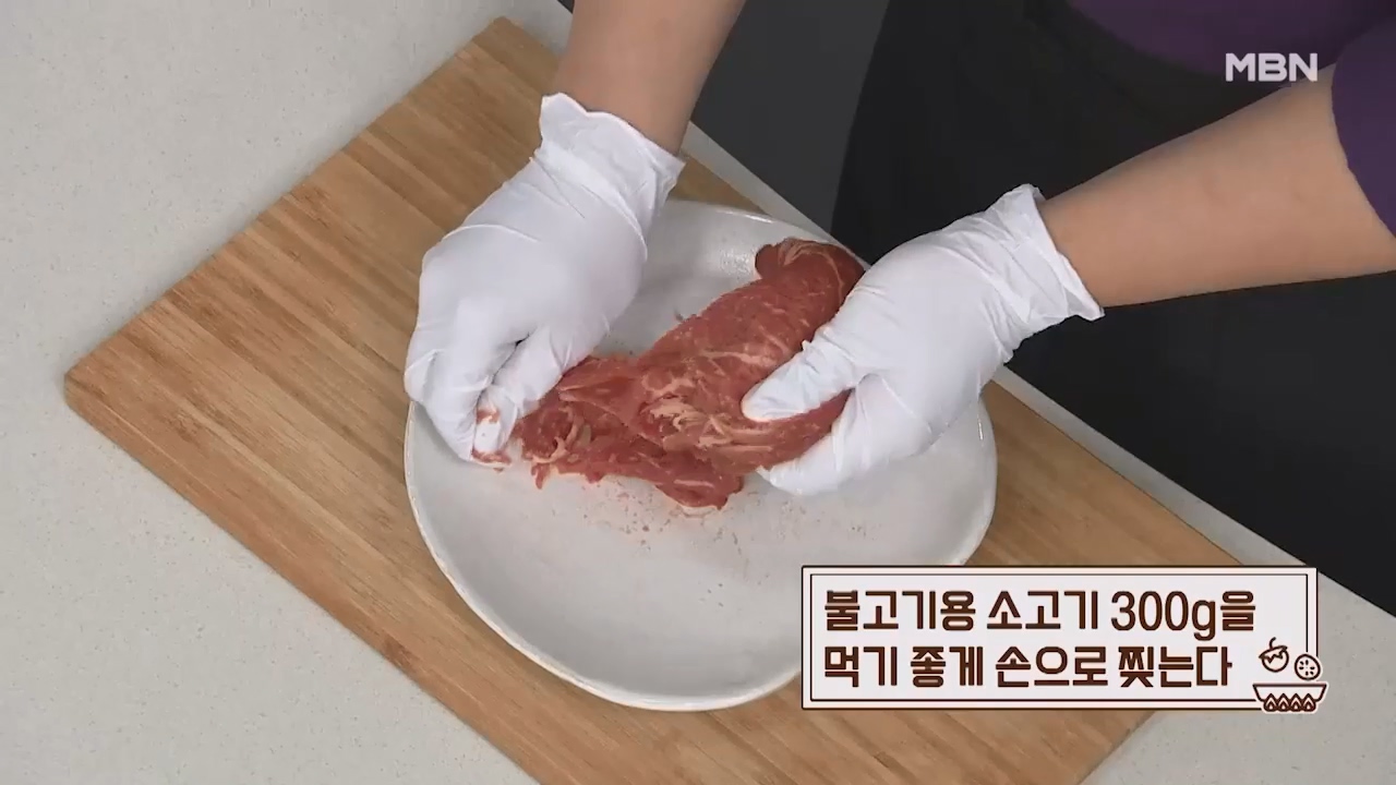 1. 불고기용 소고기 300g을 먹기 좋게 손으로 찢어줍니다.