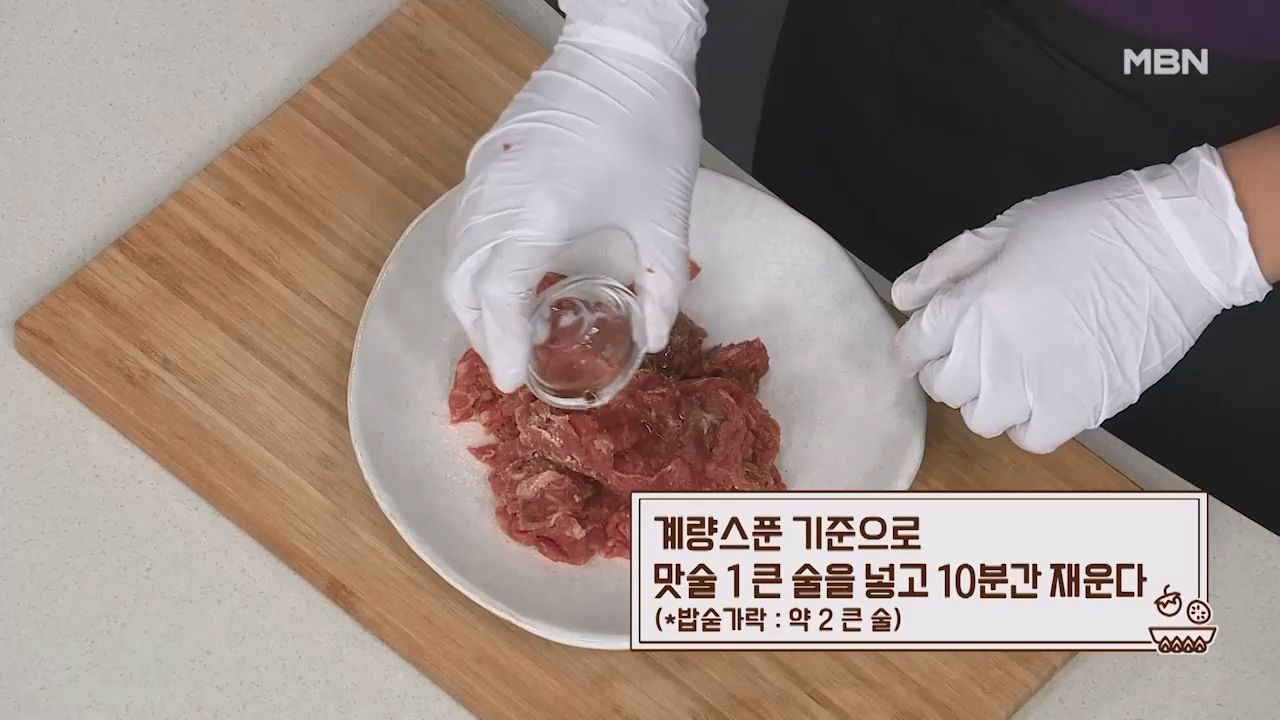 3. 계량스푼 기준으로 맛술 1큰술을 넣고 10분간 재웁니다. (밥숟가락 약 2큰술)