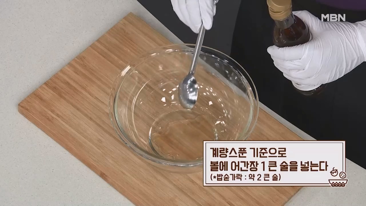 4. 계량스푼 기준으로 볼에 어간장 1큰술을 넣습니다. (밥숟가락 약 2큰술)