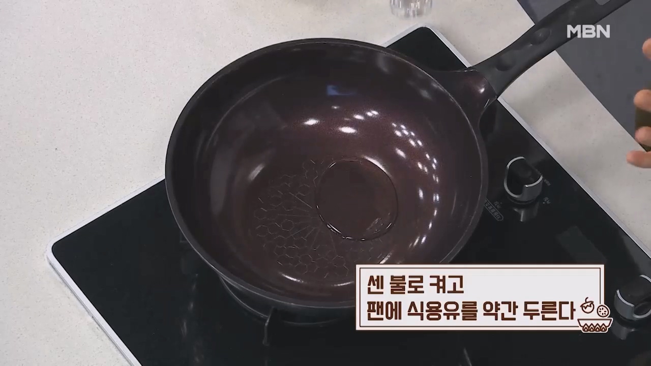 7. 센불로 켜고 팬에 식용유를 약간 두릅니다.