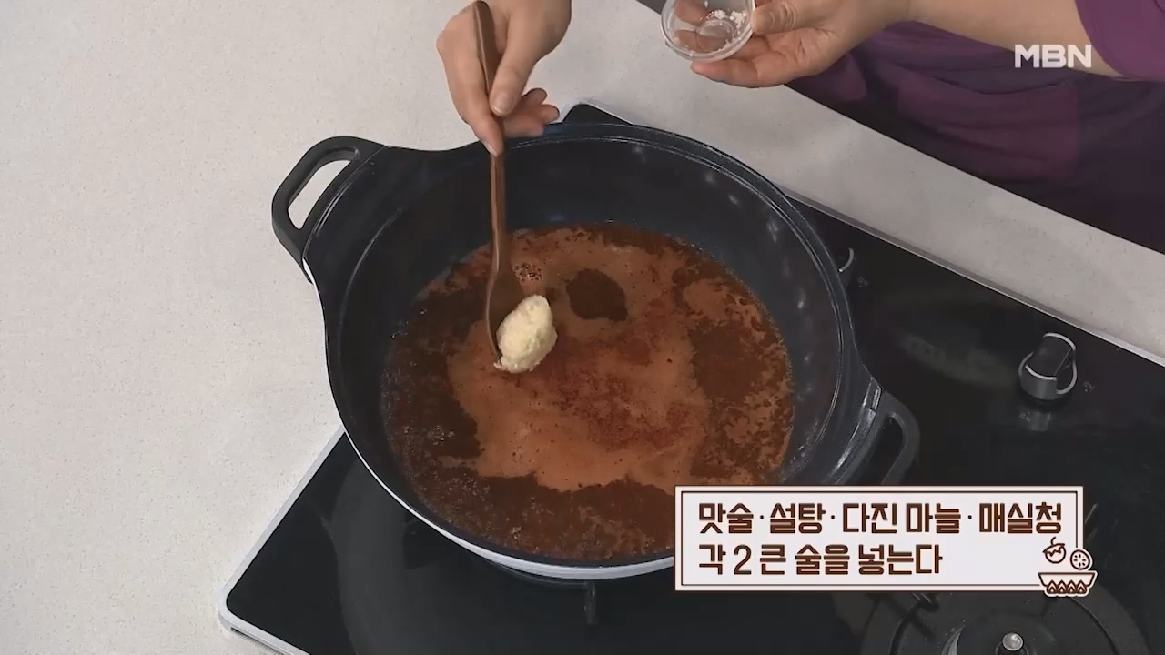 7. 맛술 2큰술, 설탕 2큰술, 다진마늘 2큰술, 매실청 2큰술을 넣습니다.