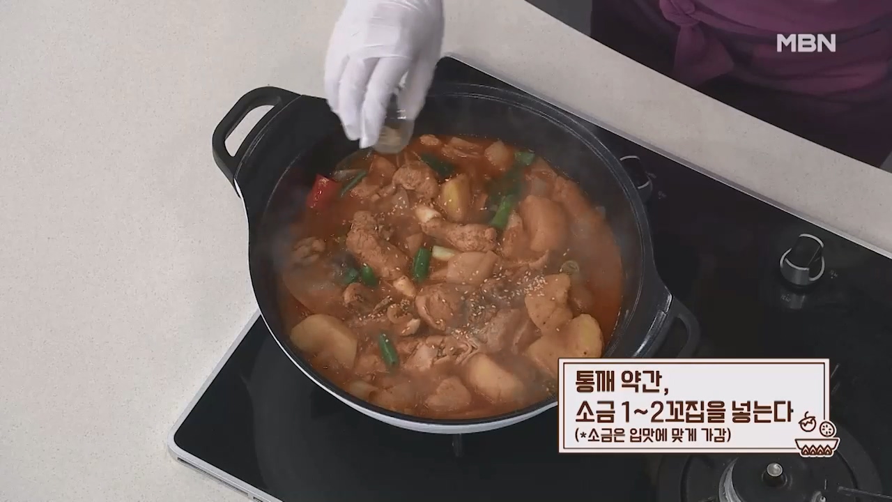 14. 통깨 약간과 소금 1~2꼬집을 넣으면 맛있는 닭볶음탕이 완성됩니다.