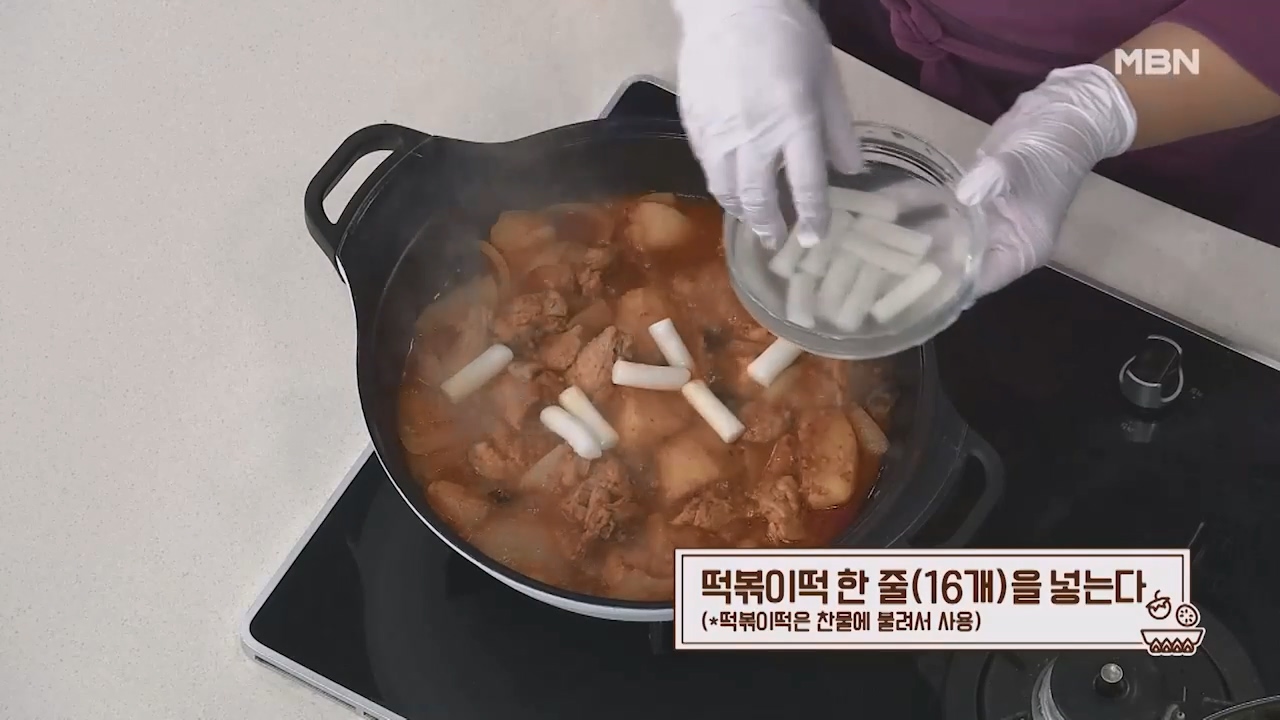 11. 찬물에 불린 떡볶이떡 한줄 (16개)을 넣습니다.
