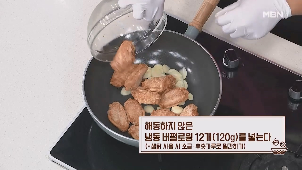 3. 해동하지 않은 냉동 버팔로윙 12개(120g)를 넣습니다. (생닭 사용시 소금, 후춧가루로 밑간해서 사용합니다.)