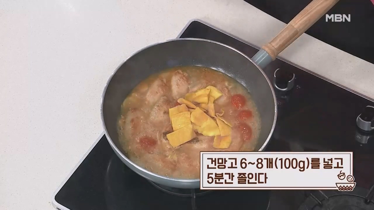 7. 건망고 6~8개(100g)를 넣고 5분간 졸입니다.