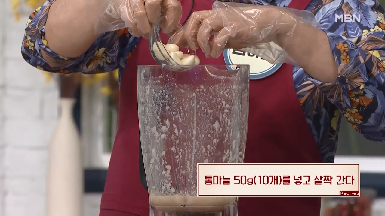 8. 통마늘 50g(10개)를 넣고 살짝 갈아줍니다.