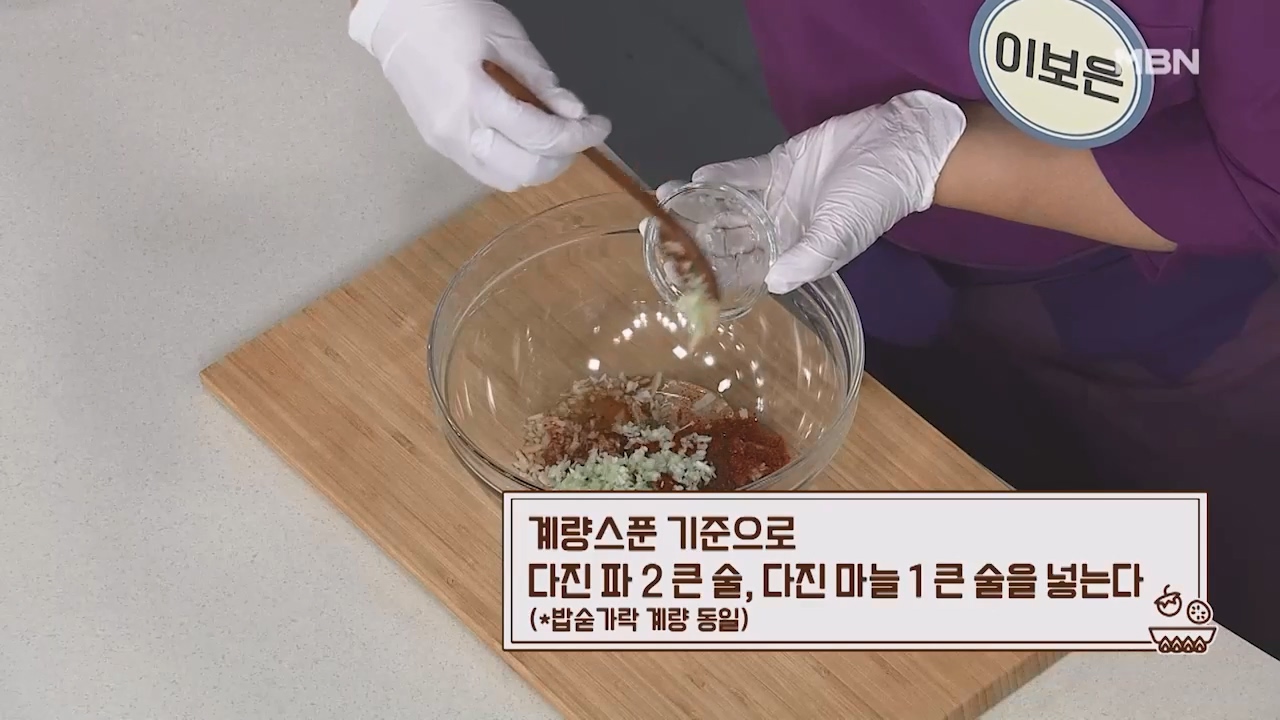 12. 계량스푼 기준으로 다진 파 2큰술, 다진 마늘 1큰술을 넣습니다. (밥숟가락 계량 동일)