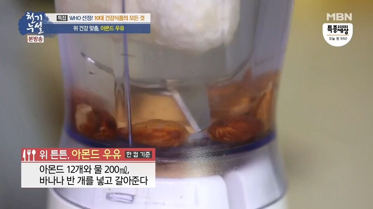 아몬드 우유 만드는법 : 아몬드 12개와 물 200ml, 바나나 반개를 넣고 갈아주면 됩니다.