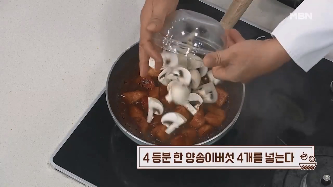 11. 4등분한 양송이버섯 4개를 넣어줍니다.