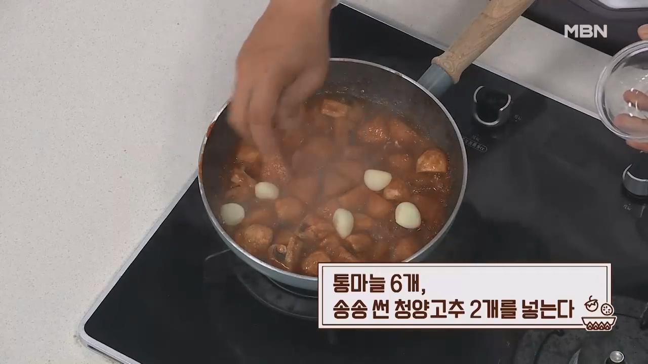 12. 통마늘 6개, 송송 썬 청양고추 2개를 넣어줍니다.