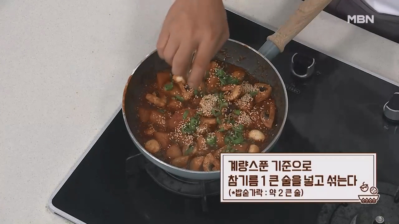 14. 계량스푼 기준으로 참기름 1큰술을 넣고 잘 섞어주면 맛있는 고구마조림이 완성됩니다. (밥숟가락 약 2큰술)