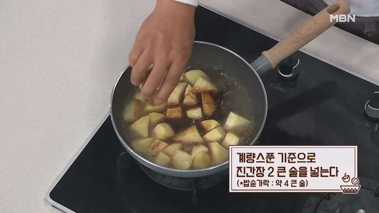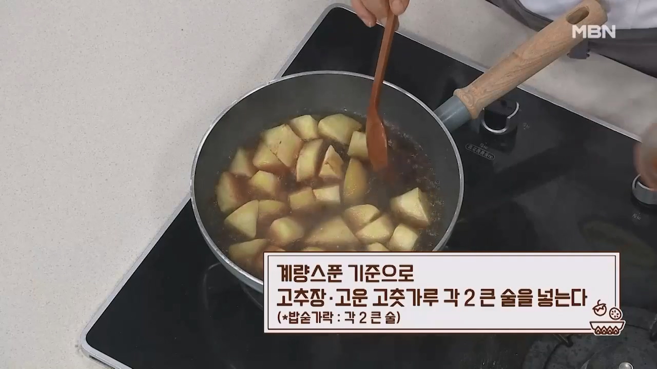 14. 계량스푼 기준으로 참기름 1큰술을 넣고 잘 섞어주면 맛있는 고구마조림이 완성됩니다. (밥숟가락 약 2큰술)