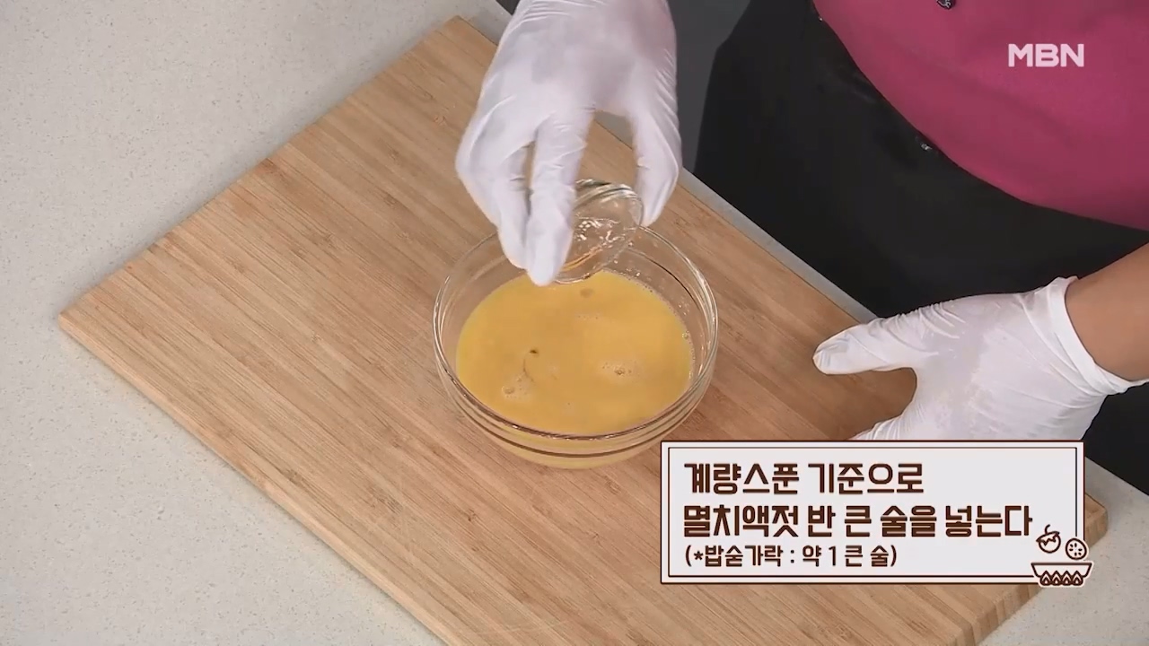 7. 계량스푼 기준으로 멸치액젓 반큰술을 넣습니다. (밥숟가락 약 1큰술)