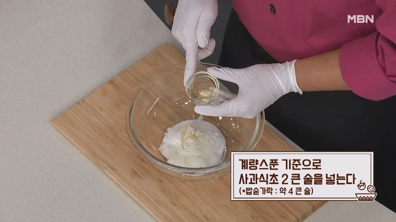 8. 계량스푼 기준으로 사과식초 2큰술을 넣습니다. (밥숟가락 약 4큰술)