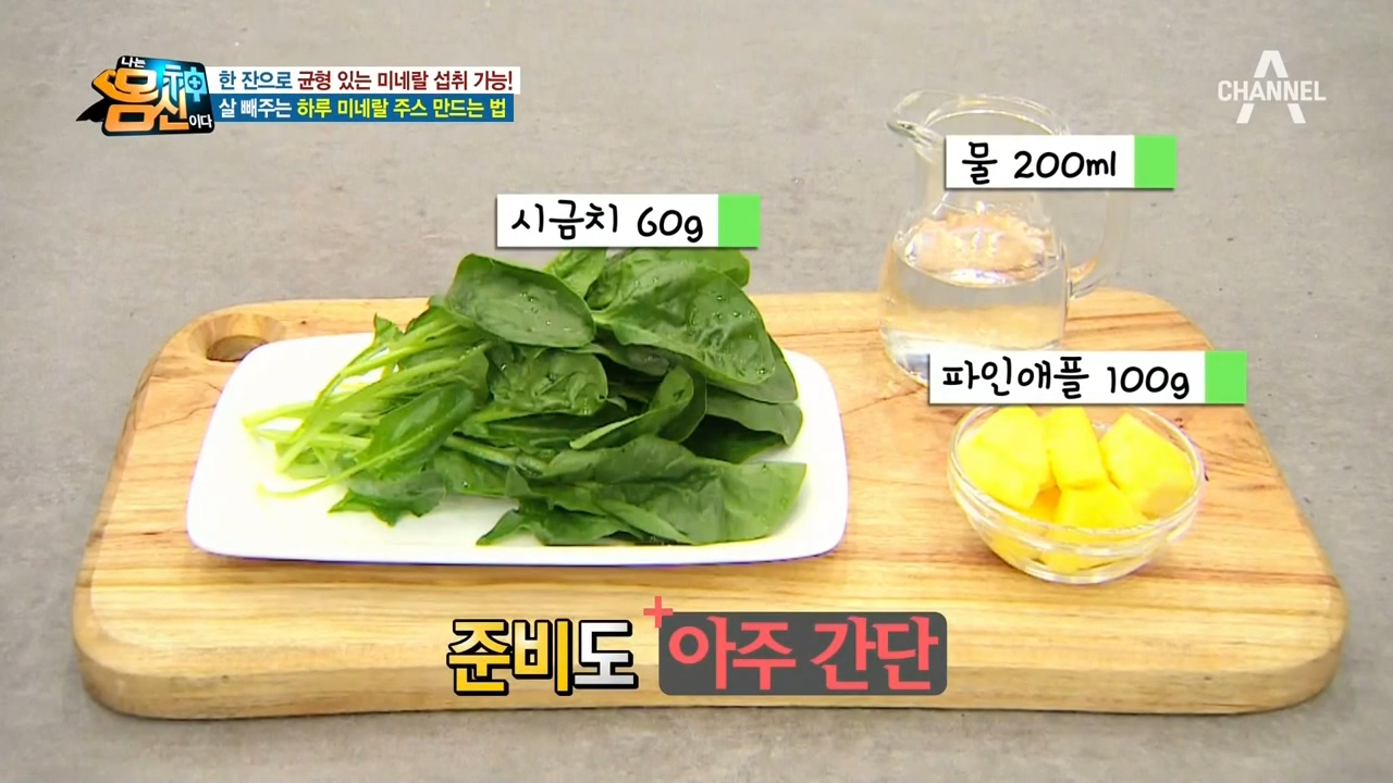 나는 몸신이다에서 비만 막아주는 하루 미네랄주스 만드는법을 알려줬습니다. 하루 미네랄주스 색깔은 마치 녹즙 같은 맛없어 보이는데 전혀 그렇지 않다고 하네요. 하루 미네랄주스에는 칼슘, 마그네슘, 칼륨, 철분, 크롬, 셀레늄 등 미네랄이 풍부하다고 하는데요.