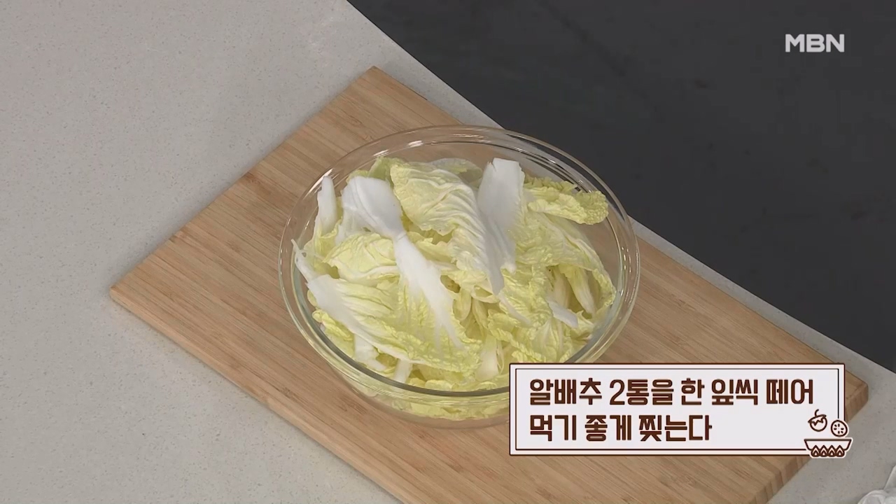1. 알배추 2통을 한잎씩 떼어 먹기 좋게 찢어줍니다.