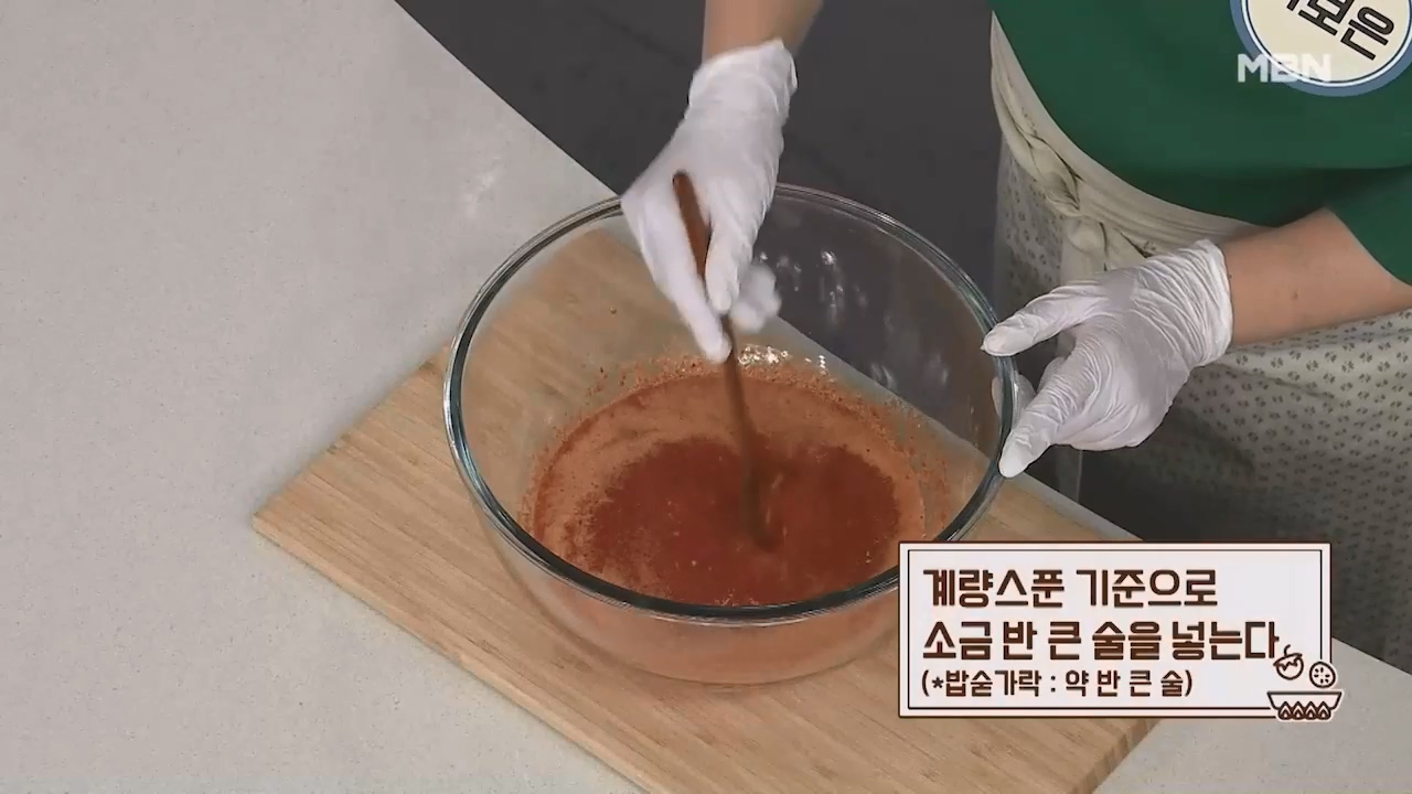 11. 계량스푼 기준으로 소금 반큰술을 넣어줍니다. (밥숟가락 약 반큰술)