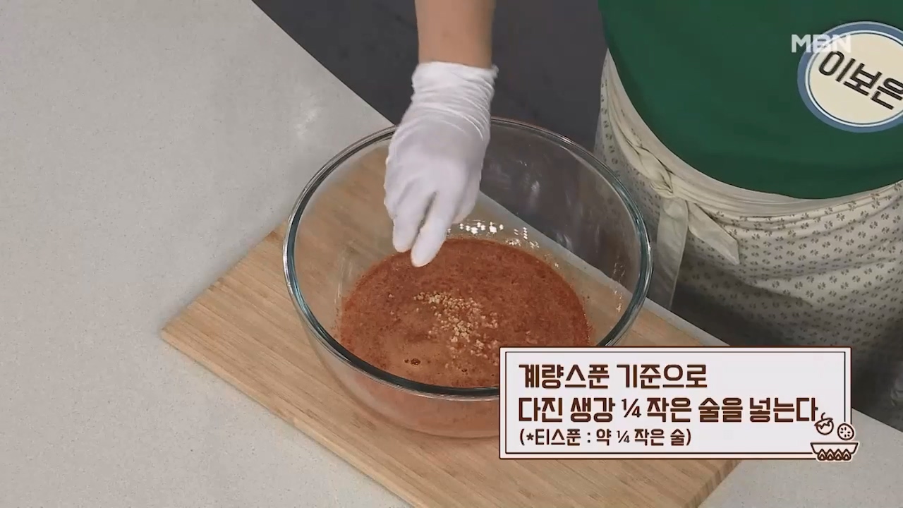 10. 계량스푼 기준으로 다진 생강 1/4작은술을 넣습니다. (티스푼 약 1/4작은술)