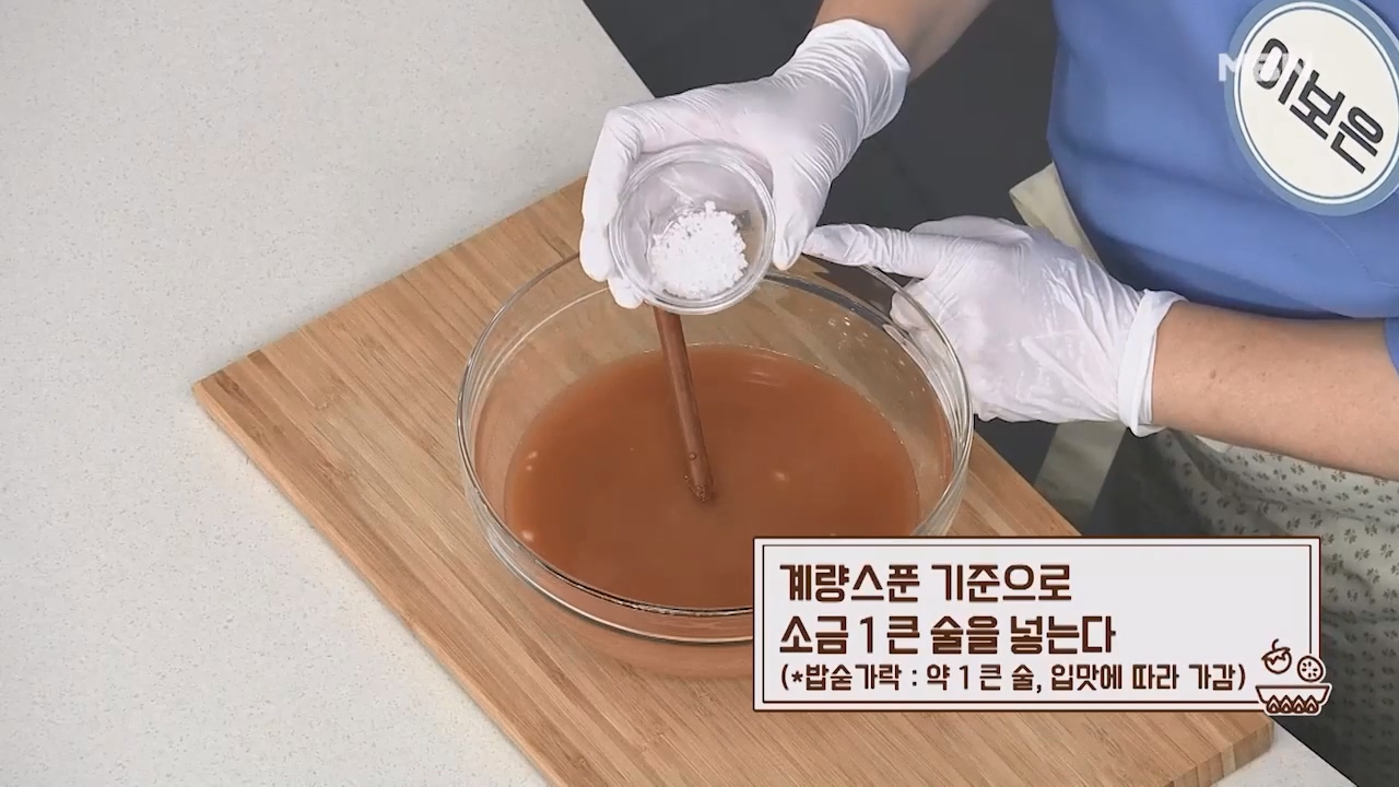 13. 계량스푼 기준으로 소금 1큰술을 넣습니다. (밥숟가락 약 1큰술, 입맛에 따라 가감)