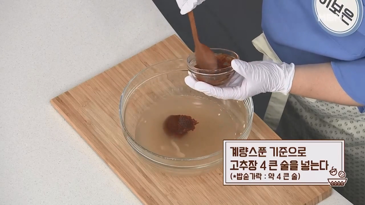 9. 계량스푼 기준으로 고추장 4큰술을 넣습니다. (밥숟가락 약 4큰술)