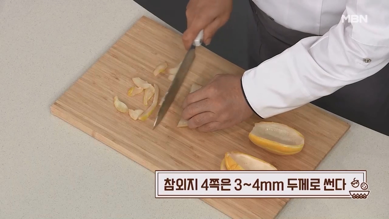 1. 참외지 4쪽은 3~4mm 두께로 썰어줍니다.