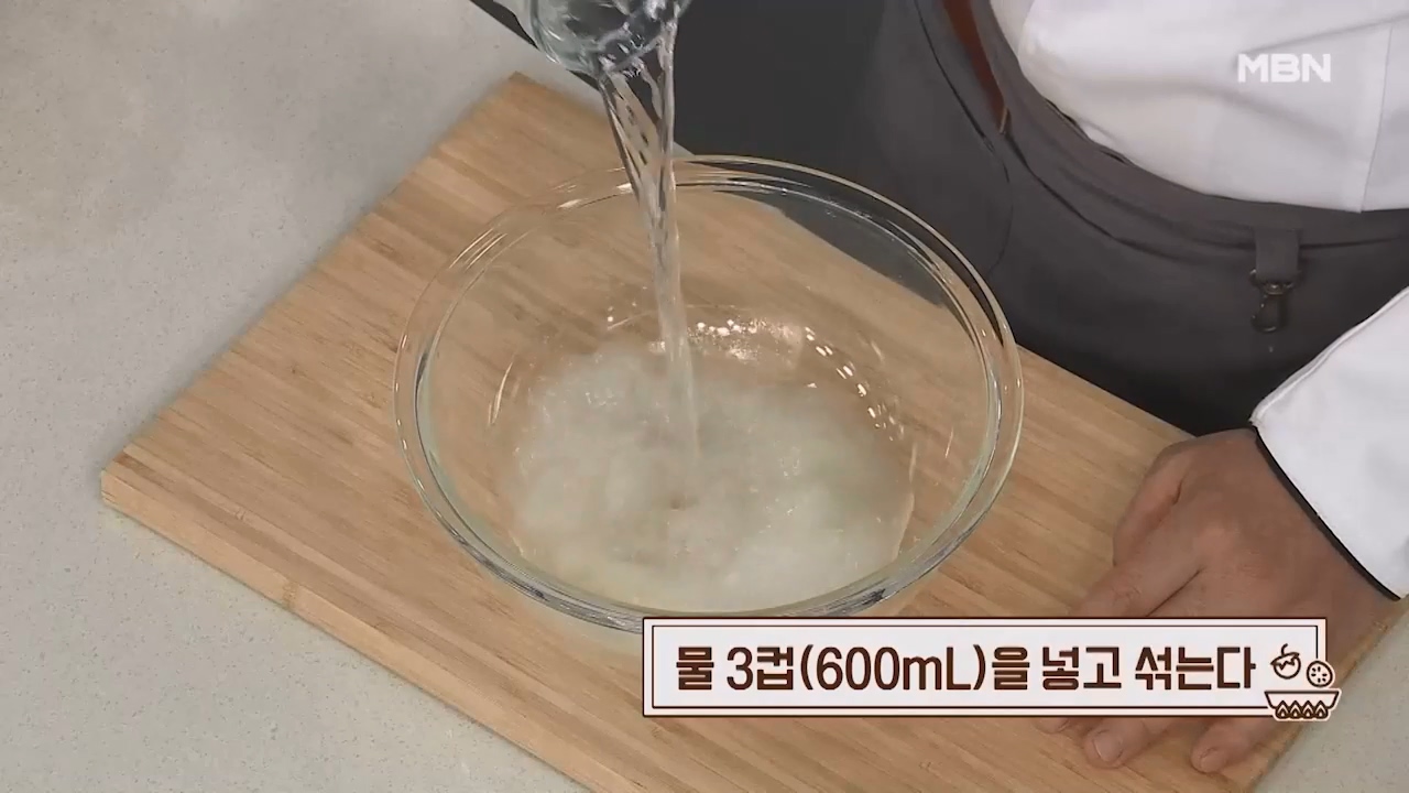 3. 물 3컵(600mL)을 넣고 잘 섞어줍니다.