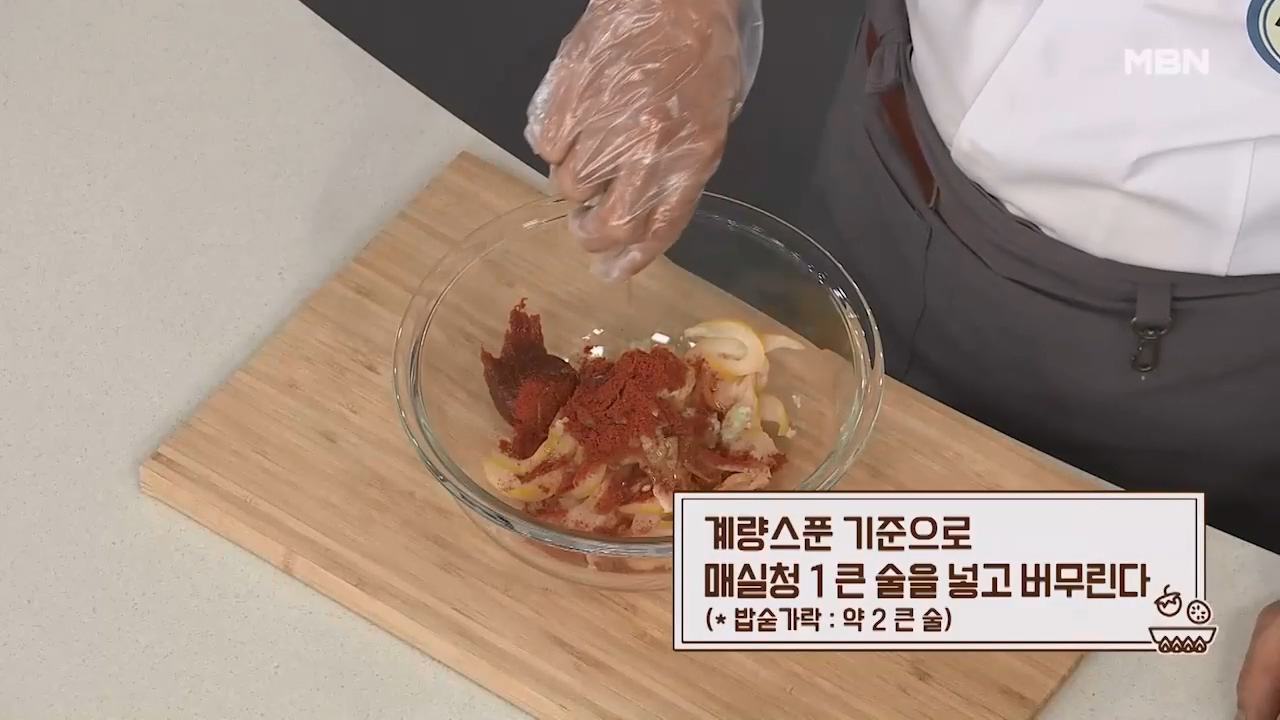 6. 계량스푼 기준으로 매실청 1큰술을 넣고 버무립니다. (밥숟가락 약 2큰술)