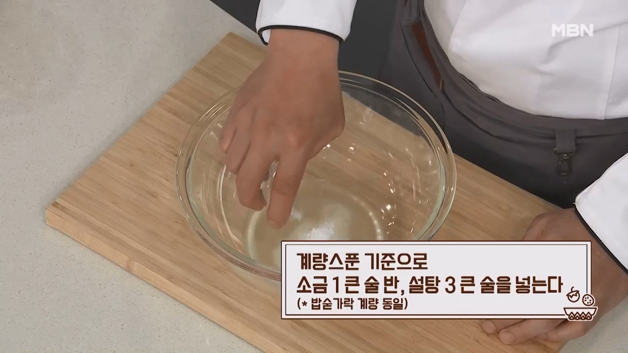 2. 계량스푼 기준으로 소금 1큰술 반, 설탕 3큰술을 넣습니다. (밥숟가락 계량 동일)